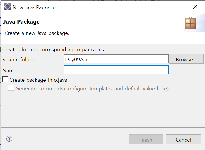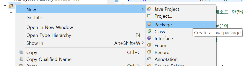 이클립스에서는 아래와 같이 패키지를 생성할 수 있다.