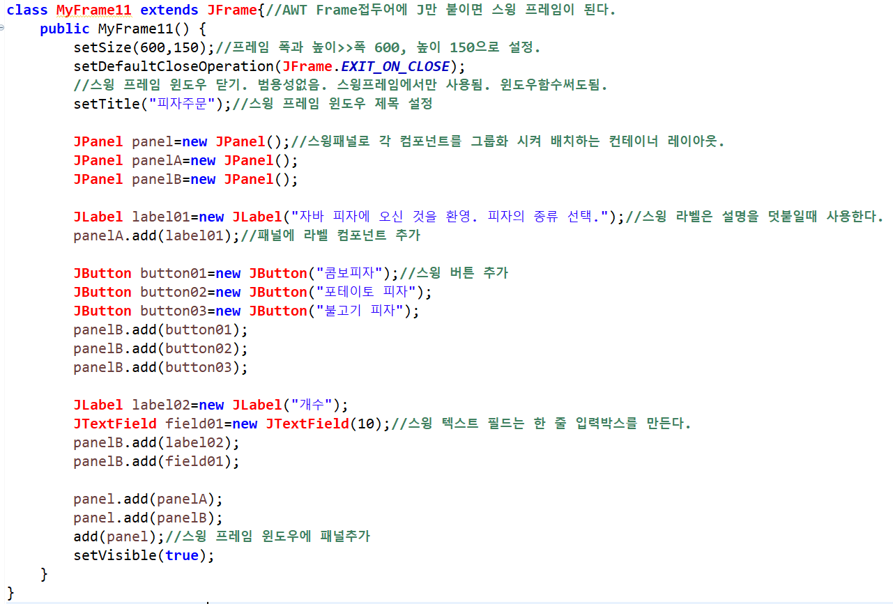 ex) 피자주문 프레임 (이벤트처리 x)