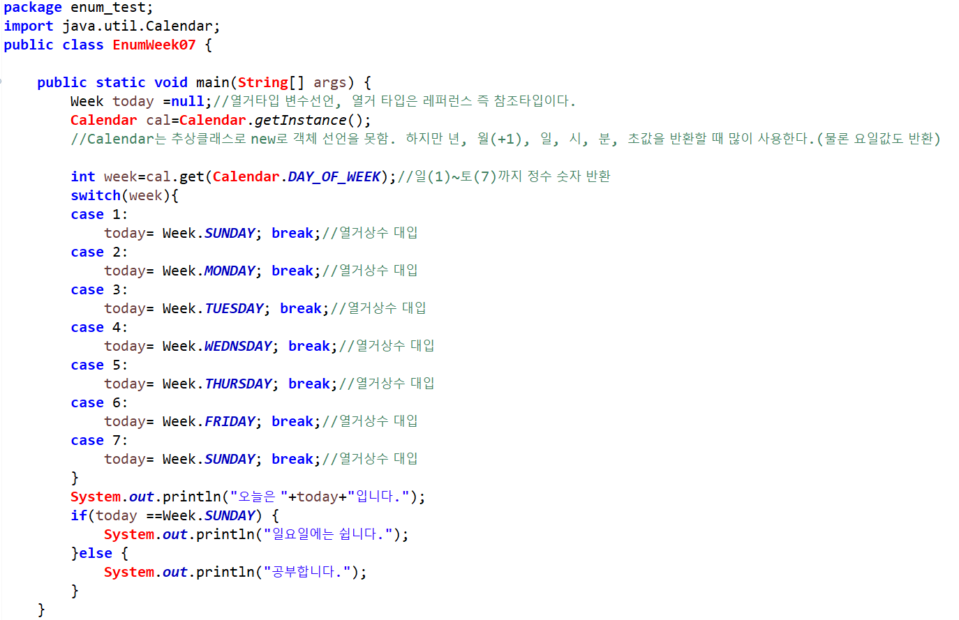 ex) 월~일을 상수로 정의하는 Week은 아래와 같다.
