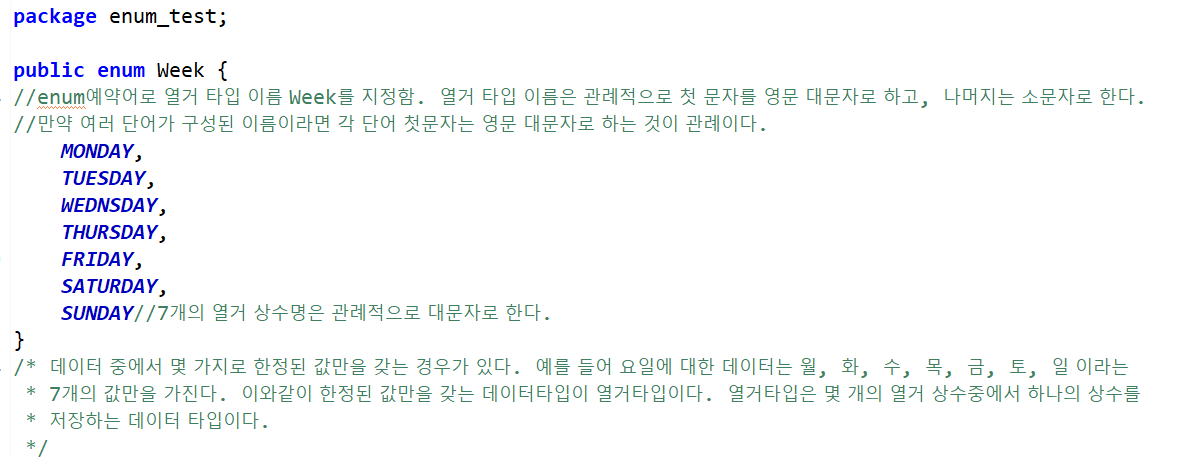 ex) 월~일을 상수로 정의하는 Week은 아래와 같다.