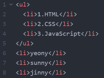 1/2/3 목차에는 사이에 <li>태그의 부모인 <ul>태그를 작성하여 구분을 해준다. (UL=Unordered List)
