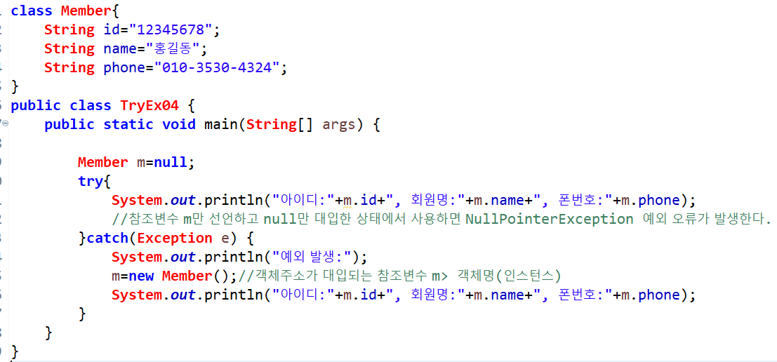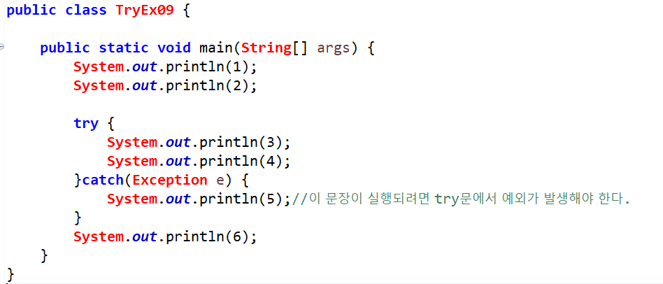 try블록 내에서 예외가 없는 경우는 catch문을 무시하고 다음 문장을 실행한다.