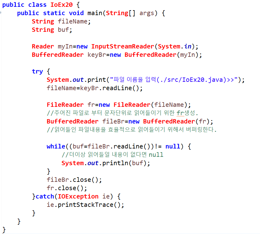 ex) 파일명을 입력받아 파일 내용 출력하는 예제