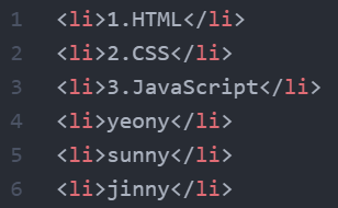 여기서 <ul> 을 <ol>로 바꾸면 목록들 앞에 자동으로 숫자가 넘버링이 되므로,