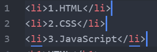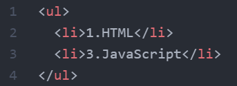 1/2/3 목차에는 사이에 <li>태그의 부모인 <ul>태그를 작성하여 구분을 해준다. (UL=Unordered List)