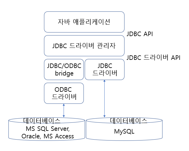 Sun사는 애플리케이션 프로그래머를 위해서는 JDBC API를 제공하고, 데이터베이스 업체들을 위해서는 JDBC 드라이버 API를 제공해 많은 데이터베이스 업체들이 그들의 데이터베이스를 위한 드라이버를 개발할 수 있도록 해서 업체들은 자신들의 드라이버를 쉽게 드라이버 관리자에 등록할 수 있었다.