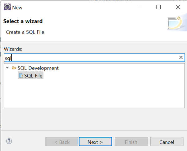 SQL파일은 sql프로젝트 및 폴더를 따로 만들고, 해당 폴더에 오른쪽 클릭-new-other-SQL File을 눌러 생성할 수 있다.