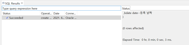 실행되면 SQL Results에서 결과를 확인할 수 있다. succeeded가 뜨면 실행 된것이다.