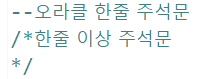 여기서 오라클 주석문은 자바와 달리 한줄 주석문은 --를 사용하고, 한줄 이상 주석문은 /**/를 사용한다.