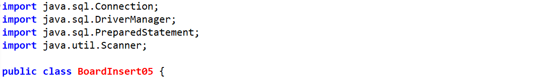 추가로 values에 ?로 주었는데, 그 뒤에 set메소드를 통해 값을 설정해주면 된다. setString(1,bname)의 전달인자 중 1은 첫 번째물음표를 뜻한다. 만약에 물음표가 여러개면 해당 위치의 물음표를 지정해준다. 뒤에는 해당 물음표에 들어가는 변수값이다. 스캐너 클래스로 검색할 제목을 입력받아 bname변수로 저장하고, 해당 값을 물음표에 설정해준다.