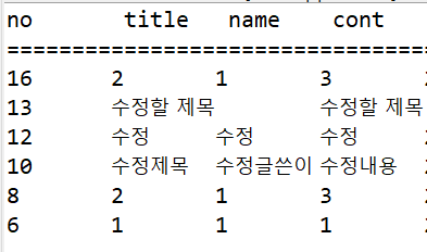 DAO와 DTO를 import 해서 객체를 생성하고, Scanner클래스로 글쓴이, 제목, 내용들을 각 DTO에 저장한다. re에 DAO의 insertBoard(bdto)값을 대입해 re==1이면 게시판 저장 성공 문구가 출력된다.