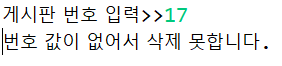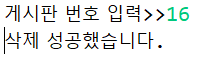 if 조건문에 대해서 db_no가 null이면 삭제를 못하며, re에 bdao의 delBoard(bno)값을 대입해 re==1이면 삭제 성공 문구가 출력된다. else문으로 db_no가 null이면 번호 값이 없어서 삭제 못한다는 문구가 출력된다.