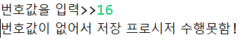 DAO를 import 해서 객체를 생성하고, Scanner클래스로 번호값을 입력 받아 bno에 저장한다. bdao.storedProcedure(bno)메소드를 실행하면, 저장 프로시저가 실행되며 번호값에 해당하는 레코드를 출력한다.