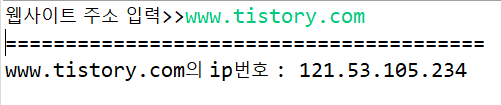 - String getHostAddress() : 주소 정보를 나타내는 문자열을 반환한다.