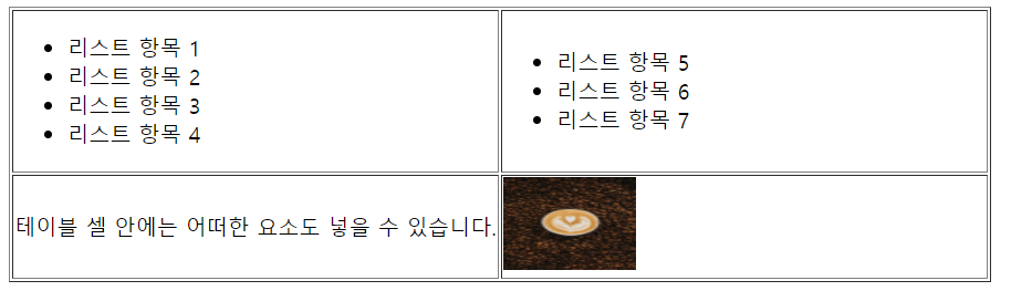 table태그는 표 형태의 데이터를 표시하는 데 사용한다. 테이블 하나의 행을 tr태그로 표시하며, tr태그 안의 데이터 (행 안의 열 데이터)는 td태그와 th태그로 표시한다. 여기서 th태그는 글자를 중앙정렬하고 진하게 표현한다.