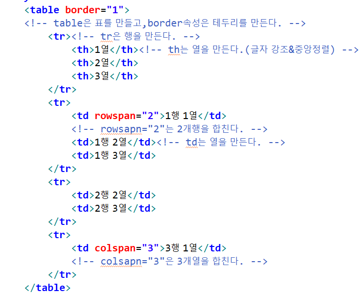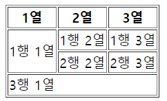rowspan="합칠 행의 수", colspan="합칠 열의 수"