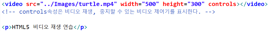 src="동영상 파일 경로와 파일명" (지정한 경로의 파일 삽입) ../ 는 한단계 상위폴더로 이동(상대경로)