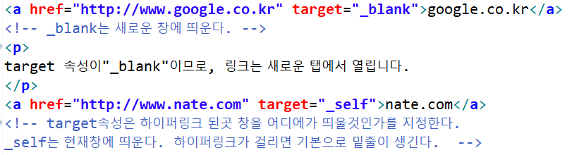 target="_blank" (링크를 새로운 탭에서 띄움) or target="_self" (링크를 현재 창에서 띄움)