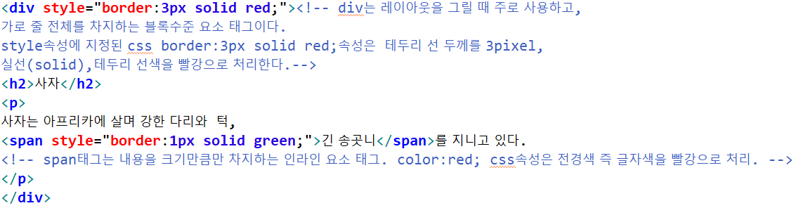 - span은 인라인 요소이기 때문에 자신이 필요한 크기만 차지한다.