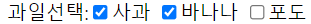 과일선택:<input type="checkbox" name="fruit" value="apple" checked />사과