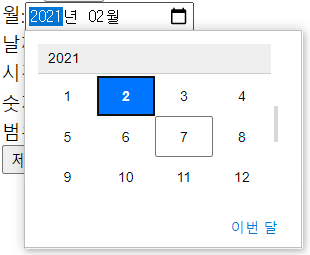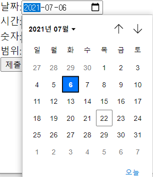 9) range : 2개의 숫자사이에 숫자를 선택할 수 있는 슬라이더 컨트롤