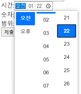 9) range : 2개의 숫자사이에 숫자를 선택할 수 있는 슬라이더 컨트롤