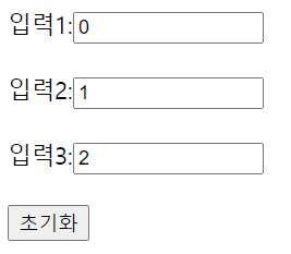 초기화 버튼을 누르면 0, 1, 2가 각 textarea 안에 대입된다.