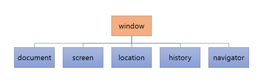 브라우저에 내장된 객체를 '브라우저 객체'라고 한다. window는 브라우저 객체의 최상위 객체이며, window객체에는 하위 객체가 포함되어 있다. 계층적 구조로 이루어져 있으며 이를 브라우저 객체 모델(BOM, Browser Object Model)이라고 한다.