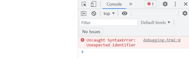 그러면 오류가 발생한 부분을 알 수 있게 되는데, debugging.html 파일의 8행의 코드를 수정하면 오류를 해결할 수 있다고 알려준다.