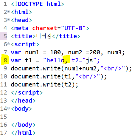 기존 코드에서 writ(t2)로 일부러 작성하고 실행해 소스 탐색창을 열어 현재 HTML파일을 선택한다.