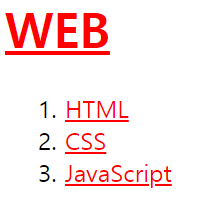 CSS부분에만 밑줄을 쓰고싶으면 CSS style 태그에 text=decoration:underline 을 추가하면 된다.