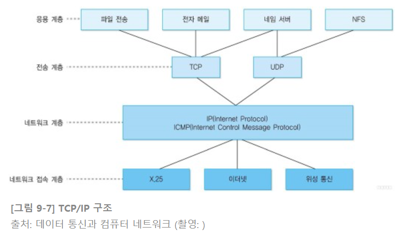 인터넷 표준 프로토콜으로 컴퓨터의 데이터 통신을 행하기 위해서 만들어진 프로토콜 체계