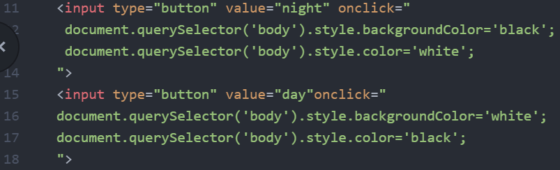 사진처럼 코드를 작성하면 night 버튼을 눌렀을 때 <body>의 background색을 검정색으로 바뀐다.