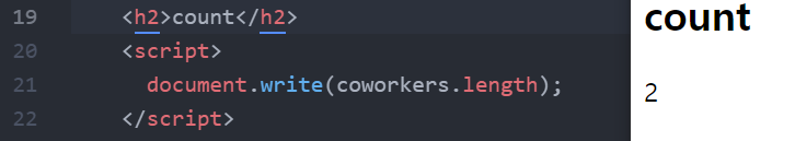 coworker.length를 사용하니 배열 안에 들어있는 값이 2라고 알려준다.