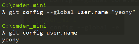 동일하게 "git config --global -e"를 입력하고 "git config --global user.name "유저네임입력""하고 "git config --global user.email "이메일주소입력""을 입력해 유저이름과 이메일을 입력한다. 확인하고 싶으면 "git config user.name(user.email)"을 입력하면 된다.