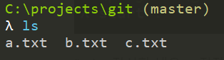 깃이라는 폴더 안에 abc 총 3가지의 파일을 만들어 보는데 echo라는 명령어를 이용해서 간단하게 만들어본다.
