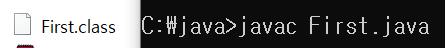 2. 작성된 원시 언어를 자바 컴파일 명령어인 javac.exe에 의해서 "javac 파일명.java"를 입력해 컴파일하면 "파일명.class" 바이트 코드 클래스 파일이 만들어진다. (ex. javac First.java 입력 >> First.class 생성)