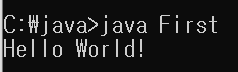 3. 컴파일 된 클래스 파일에서 .class확장자를 떼 버리고, "java 파일(클래스)명" 만 입력하면 자바가상머신(JVM)에 로드 되어져서 실행한다. (ex. java First)