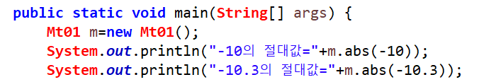 ex) 매개변수 타입이 다른 경우의 메소드 오버로딩